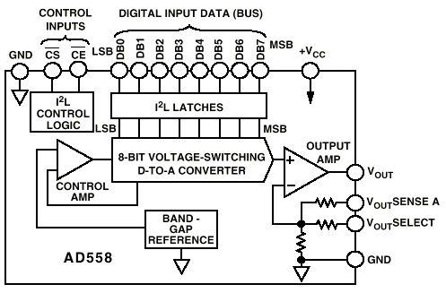 Zur Anwendung kommt der AD558 aus dem Hause ANALOG DEVICES.Dieser wartet mit folgenden Features auf: